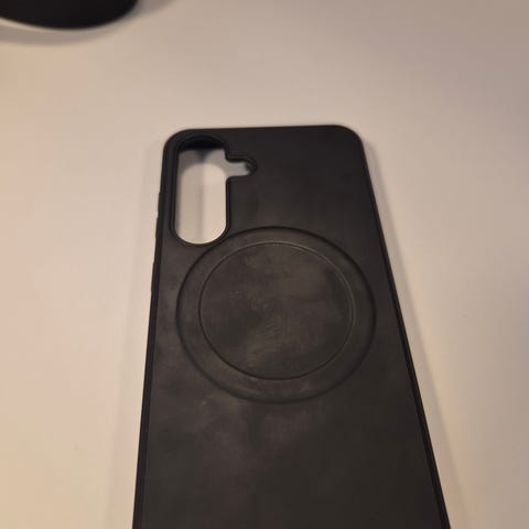 Samsung telefondeksel i svart farge. Dekselet er formstøpt for en Samsung-smarttelefon med utsparing for kamera og knapper. Innsiden har strukturert overflate og integrert rund modul i midten. Passer for deg som ønsker et enkelt, mørkt deksel til Samsung-telefonen din. https://www.power.no/mobil-og-foto/mobiltilbehoer/mobildeksel/deksel/samsung-galaxy-s26-slankt-magnetdeksel-svart/p-4229501/