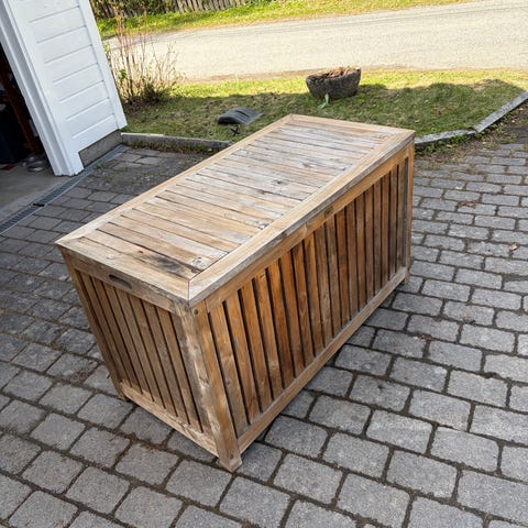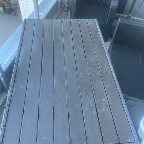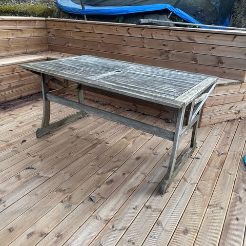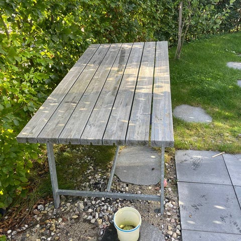 Fungerende hagebord av tre som hadde vært kjempefint med slipping. Kan brukes som det er.