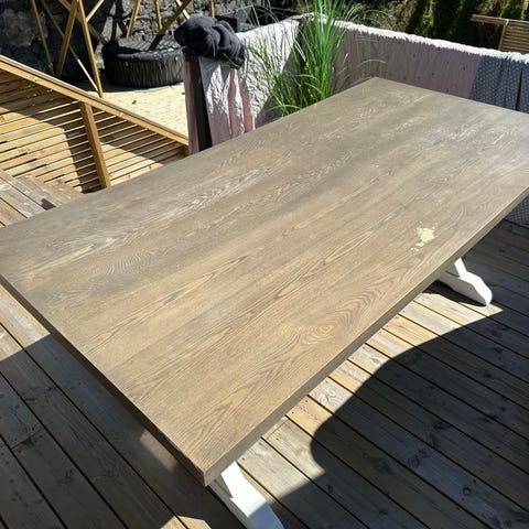 Pent brukt bord fra IKEA. Brukt stort sett med duk som har beskyttet bordplaten.