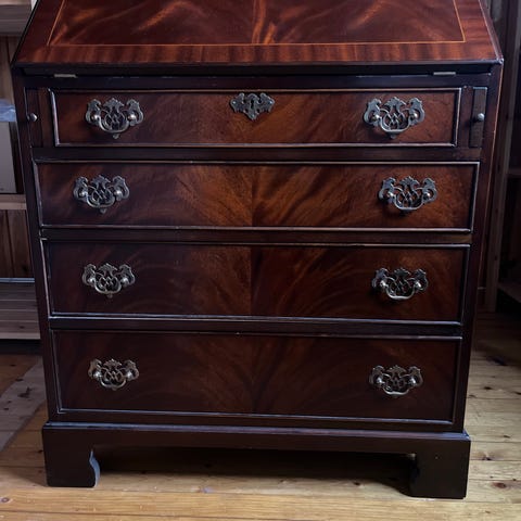 Fint, gammelt skatoll i teak selges rimelig. Fungerer fint, men kunne trengt litt kjærlighet😊