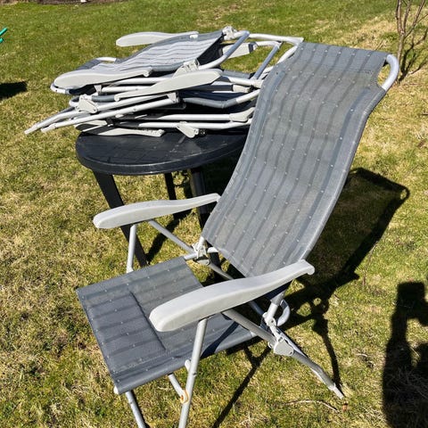 Gir bort 3 krakker som kan foldes, som har oppbevarings mulighet på undersiden. Perfekt hvis du trenger å sitte når du er på farten. De trenger en vask. De er ikke helt nye akkurat, men de er lite brukt