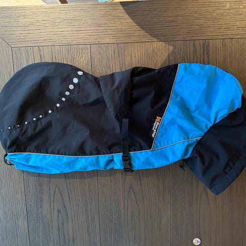 Nonstop dogwear ullvang hundedekken i størrelse 65 cm. Dekkenet er i blågrønn farge med justerbar stropp rundt kroppen. Innside med mønstret fôr. Egnet som ytterdekken for hund, for å gi beskyttelse mot vær og vind på tur og i hverdagsbruk.