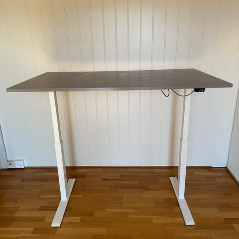 Rodulf hev og senk skrivebord fra Ikea selges. Fungerer og i god stand, men har noen bruksmerker. En ripe på ca 10 cm på bordplata (se bilde), men ikke særlig synlig.
