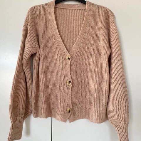 Bik Bok cardigan for dame i størrelse S. Strikket modell i gul farge med ribbestruktur og rund hals. Jakken har lange ermer og lukkes med knapper foran. Inneholderalpaca og ull i materialet, som gir et mykt og varmt plagg egnet til bruk over topper, kjoler eller skjorter i hverdagen.