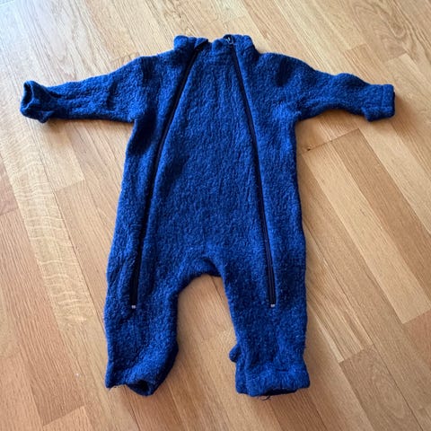 Name it ulldress for baby i str. 56, unisex. Dressen er i grå ull med strukturstrikk og hette. Den har glidelås foran med drahempe og lange ermer og ben. Materialet er ull, som gir god varme og komfort. Passer til bruk inne og ute som ytterlag eller mellomlag for spedbarn. Det følger med en matchende strikkelue i samme farge og struktur med knyting under haken.