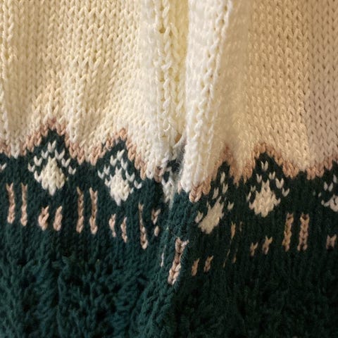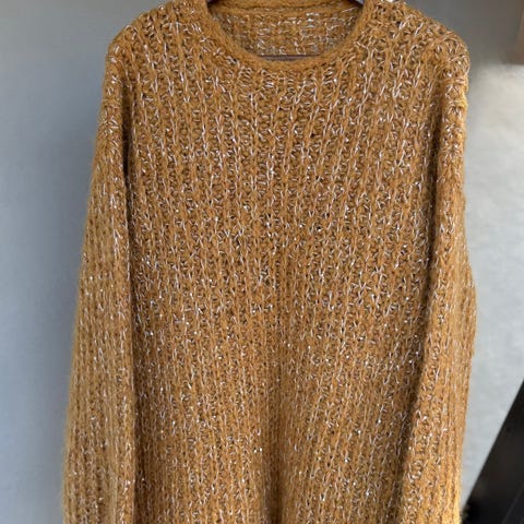Hjemme strikkede gensere for dame i størrelse M. Genseren har flerfarget mønsterstrikk med rund hals og lange ermer. Passer til hverdagsbruk og kan kombineres med både bukser og skjørt. Laget i ull for varme og komfort.