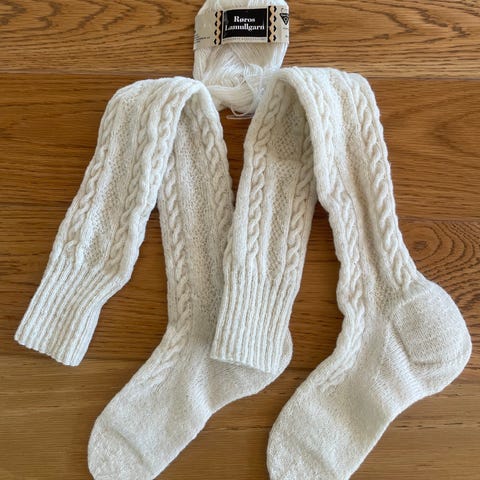 Bunadssokker med havskum og flettemønster, for Sunnmørsbunad og fleire
