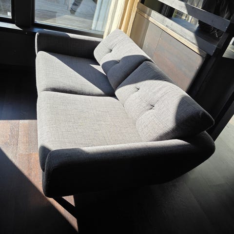 Vi har hatt dyr i hjemmet, så det kan være noe dyrehår bak putene. Dette vil trolig gå bort med riktig rengjøring/støvsuging.