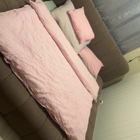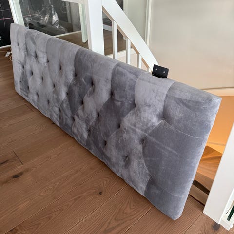 Sengegavl i rosa fløyel
