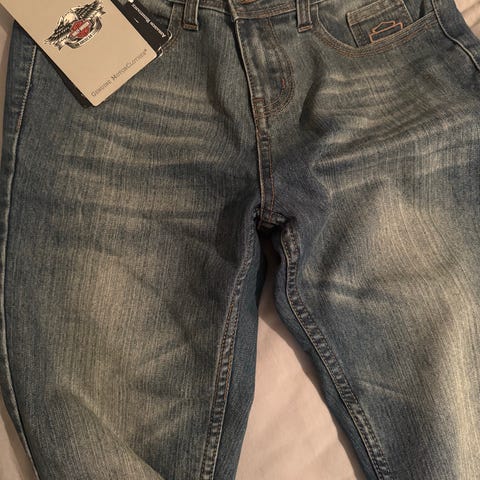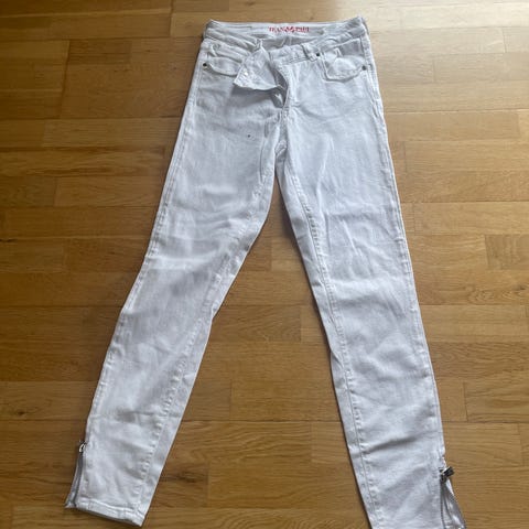Jean Paul Classique 5pkt jeans for dame i størrelse M/W30. Buksen er i blå denim laget av 98 % bomull. Klassisk 5-lommers modell med beltehemper og glidelåsgylf. Vaskelapp anbefaler separat vask ved 40 grader. Det er klippet litt av bena, da den var for lang. Ikke sydd opp. Enkel jobb å sy den opp, eller bare brett opp. Jeg sender gjerne mot porto,