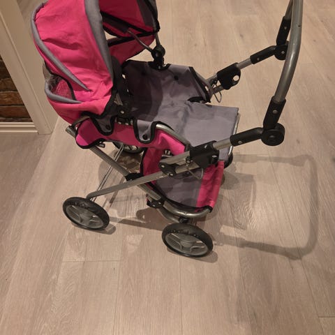 Nesten ubrukt tvilling dukkevogn selges. Vognen er Enkel å slå opp og legge sammen den er ca 55cm høy og 40 cm bred, Perfekt for realistisk rollespill og omsorgslek