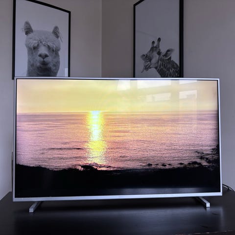 Skjermen er flat og står på to føtter, og det følger med fjernkontroll. TV-en egner seg til vanlig TV-titting, strømming av film og serier samt tilkobling av eksterne enheter via tilgjengelige innganger på baksiden eller siden (ikke synlige på bildet). Modellen er en smart-TV, som gir mulighet for bruk av ulike apper og nettbaserte tjenester, avhengig av hvilke som støttes av operativsystemet på TV-en.