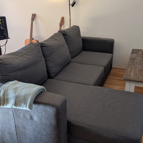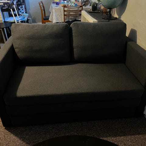 Pent brukt sovesofa fra IKEA. Man kan velge hvilken side sjeselongen skal være på, enkelt å bytte side.