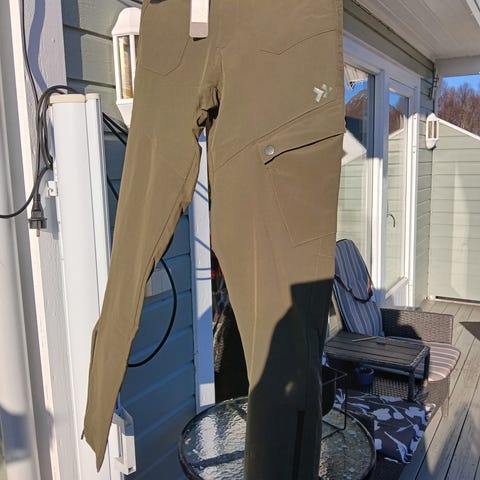 Turbukse med zip off, så den kan gjøres om til capri / shorts. Flere gode lommer med glidelås, cargo-lommene har også glidelås i tillegg til trykknapper. Forsterkning nede mellom bena, og innstramming med borrelås i bena.