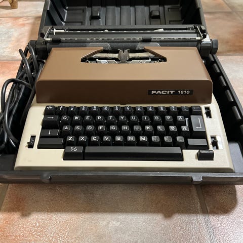 Type: Elektrisk bærbar skrivemaskin med tilhørende koffert.