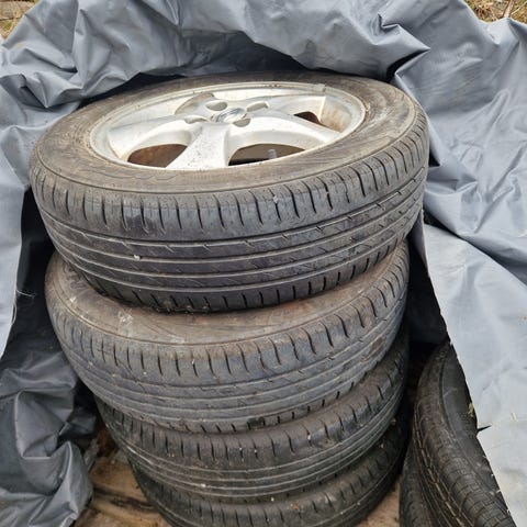 Nesten nye Lanfsail sommerdekk, produsert uke 49 2024. Kjøpt Juni 2025 og kjørt på i 4 mnd. Felger er til en Subaru Justy 2010 modell. Mangler senterkopp på 1 felg. 6-7 mm mønster dybde, ingen skjev slitasje.