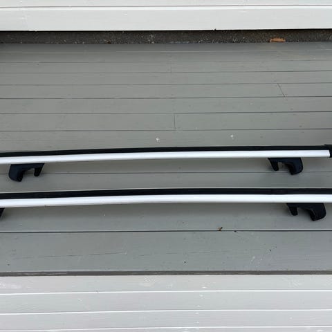 Toyota takstativ med tverrstenger i aluminium. Stativet har plastføtter med integrert festeløsning for montering på bilens tak. Passer til biler som er tilpasset denne typen originale Toyota tverrstenger. Egnet som base for montering av takboks, sykkelstativ eller annet takmontert utstyr innenfor anbefalt lastekapasitet fra bil- og stativprodusent.