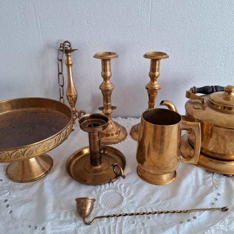Messinglysestake / vase / lysestake /