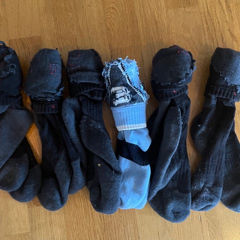 5 par med ridesokker fra Horze str. 39-41. Alle er brukt og noen har litt nupper på helene, men alle er hele og fine og har mye bruk igjen. Ett par kostet 89kr nye, jeg selger alle samlet for 100kr.
