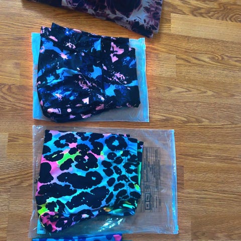 2 stk treingstights med blomstermønster og tropisk mønster selges samlet. Begge i strl S.