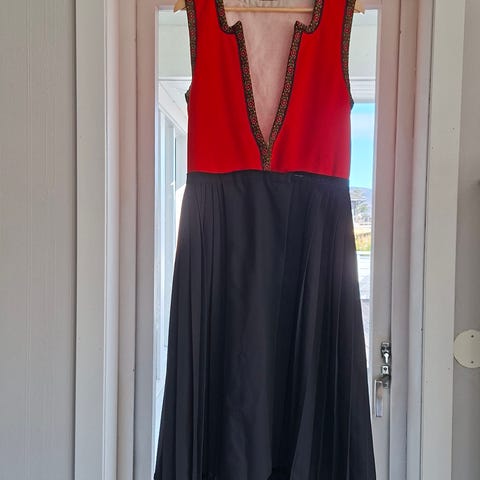 Hardangerbunad liv og stakk selges. Vil si denne passer en S til M. Er mer stoff i vesten om man trenger å sy den ut. Passer høyde 160 -165.