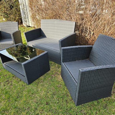 Hagestol og bord i kunstrotting grå/svart