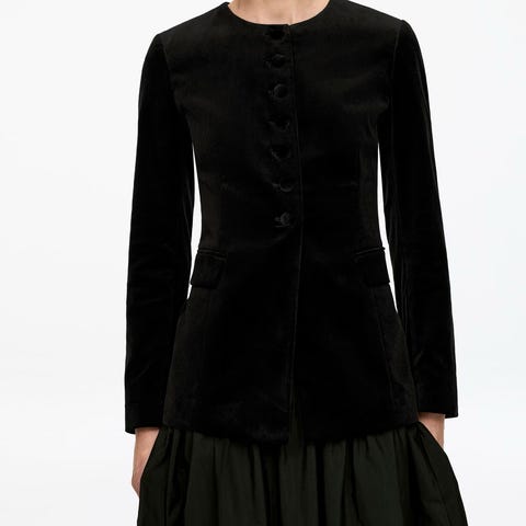 Ny i boks, Ted Baker Embellished Peplum jakke . Modellen har peplum-fasong med markert midje og knapper i front. Designet gir en feminin silhuett og passer til bruk over både bukser og skjørt. Egnet som penjakke eller lett ytterjakke i kjøligere vær. 70%ull, 10% cashmere