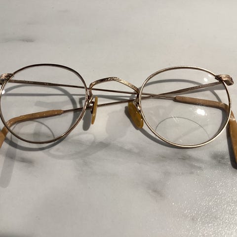 Ukjent styrke på glassene, men egnet for marginal langsynhet. Optiker kan skifte glass til ønsket styrke.