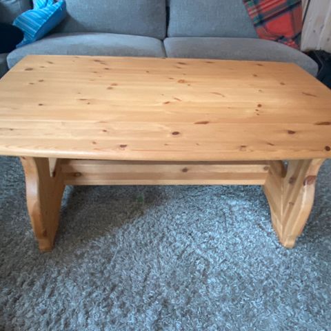 Fint furubord i heltre. Bordet har to klaffer på hver langside. Bordet er i god stand, men overflaten og klaffene er malt i hvitt nå nylig. Noen merker etter blant annet kaffe o.l (se bilde). Dette kan enkelt males over eller pusses ned hvis man ønsker hele bordet i furu.