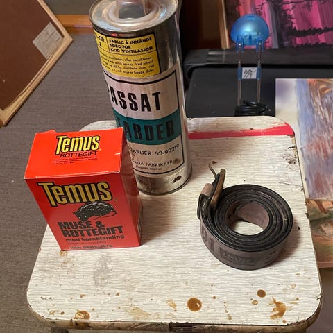 En blå krakk, ser bra ut, men har noen riper.