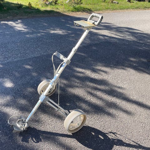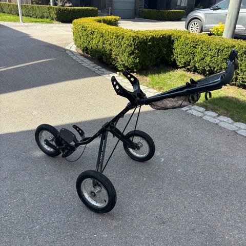Ny foldbar golftralle, og har scorekort-holder + plass til 2 baller.