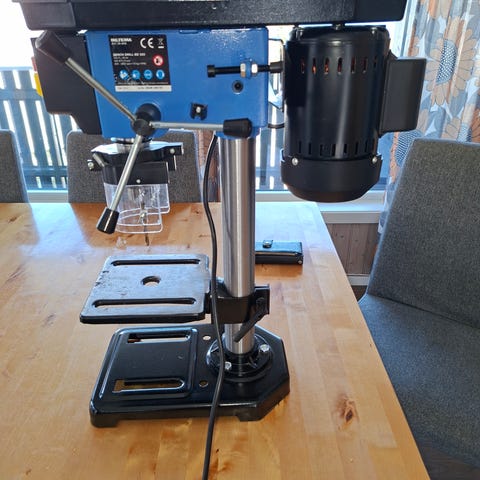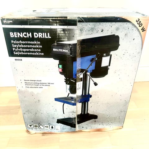 Søylebormaskin 250w for bruk på arbeidsbenk. Lite brukt, men har stått lagret i garasje i noen år. Velegnet for trepropper etc. Må hentes.