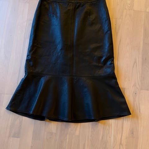 Vero Moda skinnskjørt i størrelse L. Skjørtet er svart og med paneler og lett utsvinget fasong nederst.