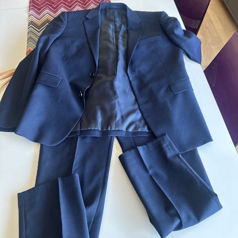 Selger en flott nyvasket blå dress med hvit skjorte som kun er brukt 3 ganger.