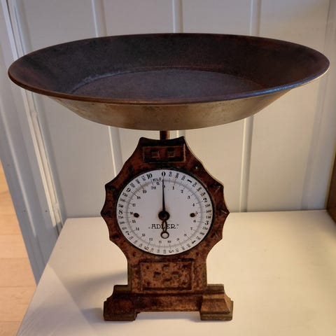 500 krSolid og elegant vintage engelsk vekt i messing/jern. I meget pen stand!SkienLegg til som favoritt.