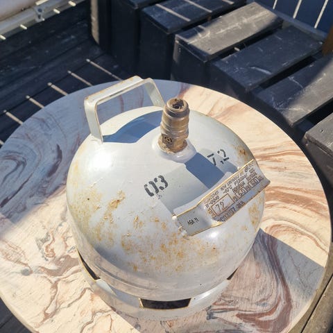 Gassflaske grå , 10 kg , tom . Må hentes på Tofte