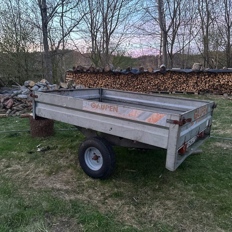 Påløpsbrems, alle 4 lemmer kan felles ned- eller tas av. Utvendig kassemål er 200x160. Uttrekkbart drag. Gode dekk
