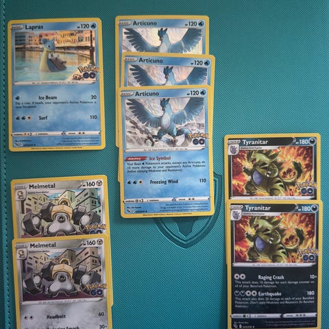 For deg som vil starte eller fylle på Pokemon GO samlingen er dette en sjelden mulighet. Alle kort er i veldig god stand da de er puttet rett i sleeves/album/toploader. Dersom du ønsker flere bilder av enkelte kort, eller annet, er det bare å ta kontakt.