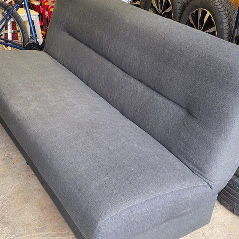 Sovesofa gis bort 220 bred og 150 dyp når den er brettet ut