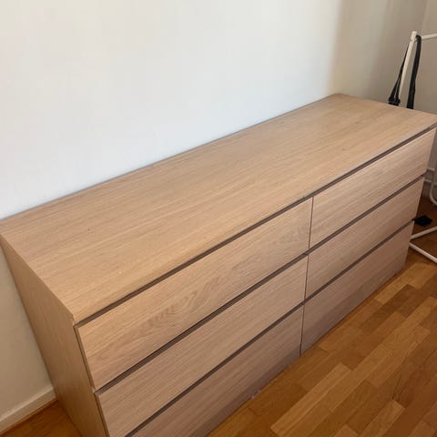 (Moving out Sale) Ikea Malm Kommode (6 skuffer, hvitbeiset eikefiner)
