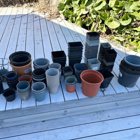 Dyrker du selv og har behov for plast potter, så har jeg 40 potter med diameter 15-25cm som jeg selger for 10,- /stk. NY PRIS: 5,- stk