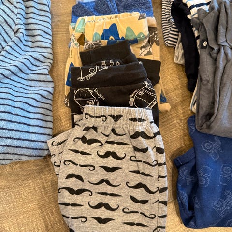 Klespakke til gutt i str 74 selges. Alt er kjøpt nytt av oss og er lite brukt av ett barn. Ingen synlige merker eller slitasjer. Klespakken inneholder merkene: Name it: 2 bukser og 1 body. Hust and Claire: 1 strømpebukse, 1 bukse og 1 body. Kommer fra et røykefritt og dyrefritt hjem.