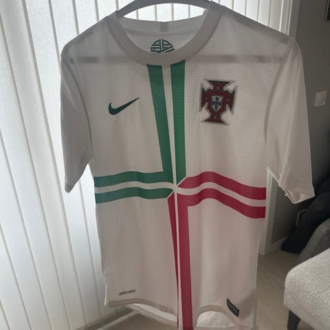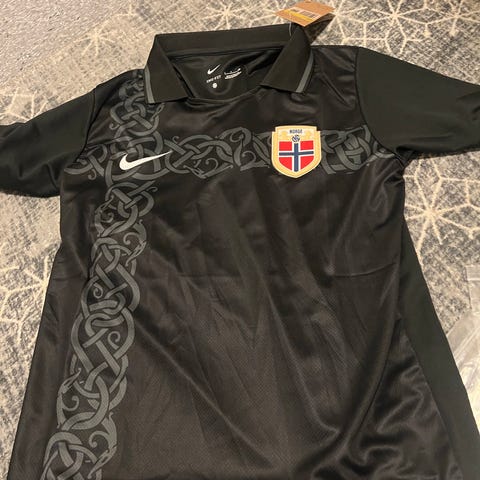 Nike fotballdrakt sett for herre i størrelse S. Settet består av kortermet trøye og shorts i svart med rosa detaljer. Egnet til fotball og annen trening. Materiale fremstår som lett og pustende syntetisk stoff, tilpasset aktivitet på bane.