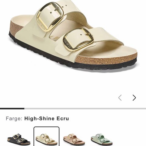 Birkenstock, modell Madrid skinnsandaler med stor og gullfarget spenne i str. 37. De har såvidt vært på føttene mine.