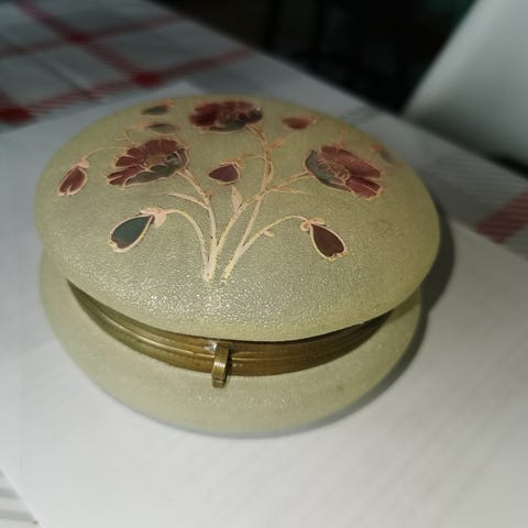 Sølvplatunert med lok fra 90 tallet. Italiensk design med inspirasjon fra kina. Lokket har dekor med bambusmotiv. Boksen er rund og lav, egnet til oppbevaring av småting som smykker, nips eller kontorrekvisita. Innsiden er glatt metall uten inndelinger. Produsent er Sambonet fra Italia