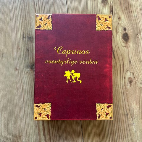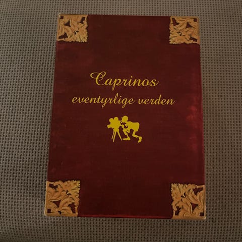 Caprinos eventyrlige verden DVD samleboks med 4 filmer. Boksen inneholder fire DVD-plater med norske familiefilmer basert på Ivo Caprinos univers. Caprino Studios 2005. Esken er åpnet, men ikke brukt.