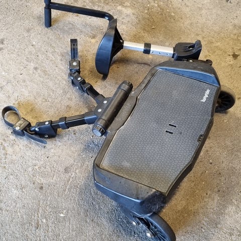 Sitte/ståbrett til vogn. Enkel å montere. Pent brukt, trenger bare en vask.
