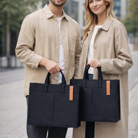 Götessons stilren veske laget i ca 75% resirkulert polyester.