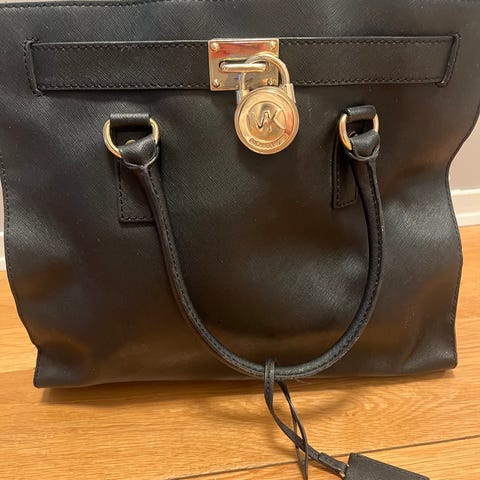 Michael Kors skulderveske i blått lær for dame. Vesken har strukturert skinn og gullfargede metalldetaljer med lås på fronten. Den bæres med skulderrem. Innvendig har vesken lyst fôr med Michael Kors-logo, en glidelåslomme og åpne lommer for småting. Egnet til daglig bruk når man ønsker en kompakt veske til det viktigste.