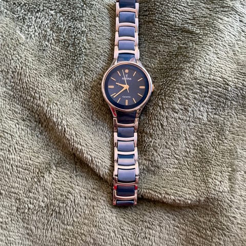 – Klokken har kvartsverk og drives av batteri – Modellen F20622 tilhører Festinas „Boyfriend“-serie og utmerker seg med en noe større urkasse (ca. 36 mm, med synlig skive på ca. 30 mm), kombinert med et klassisk og minimalistisk design, timemarkeringer, romertallet XII ved klokken 12 og en sekundviser – Vannbestandighet er oppgitt til 5 ATM – Pent brukt, med normale bruksspor i form av små riper på lenke og baklokk (se bildene). Glasset fremstår uten tydelige skader – Klokken fungerer som den skal, men batteriet må sannsynligvis snart byttes